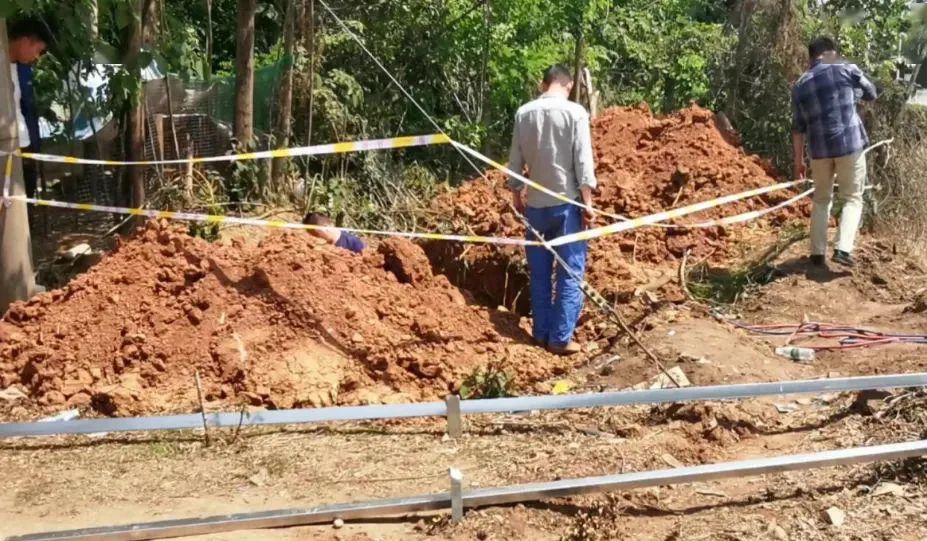 26日下午,記者趕往事發現場,現場已拉起警戒線,并用擋板圍住,燃氣公司工作人員正在對天然氣管道進行搶修。