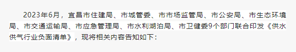 【文件通知】宜昌市9部門聯(lián)合發(fā)布《供水供氣行業(yè)負面清單》